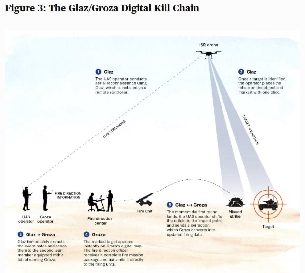 Oroszország új súlypontja a taktikai szoftver, amely lerövidíti a gyilkolási láncot. Az olyan rendszerek, mint a Svod és a Glaz/Groza, most a tűzvezetési feladatok 80%-át intézik, az észlelés és a hatás közötti időt pedig órákról percekre csökkentik. Civil programozók, sokan önkéntesként, titkosított üzenetküldő alkalmazásokon és fogyasztói szintű tableteken fejlesztették ezeket az eszközöket, mielőtt biztonságos, katonai irányítású platformokra helyezték át őket. Ez az improvizált folyamat hivatalossá vált.
