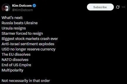 ☄️🔥 Ez következik az Irán elleni háború után: „Oroszország legyőzi Ukrajnát… és a legnagyobb tőzsdei összeomlás… csak az előszoba.” – A Megaupload fájlmegosztó hálózat alapítója, Kim Dotcom közzétette előrejelzését a közeljövőre a közel-keleti háború lezárása után.