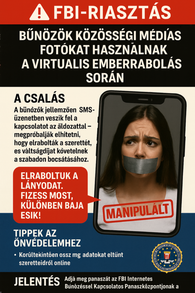 Magyar családok és gyerekek is célpontjai lehetnek a virtuális emberrablásnak. FBI-riasztás világszerte: súlyos veszély fenyeget az interneten, miután új szintre lépett a virtuális emberrablás.