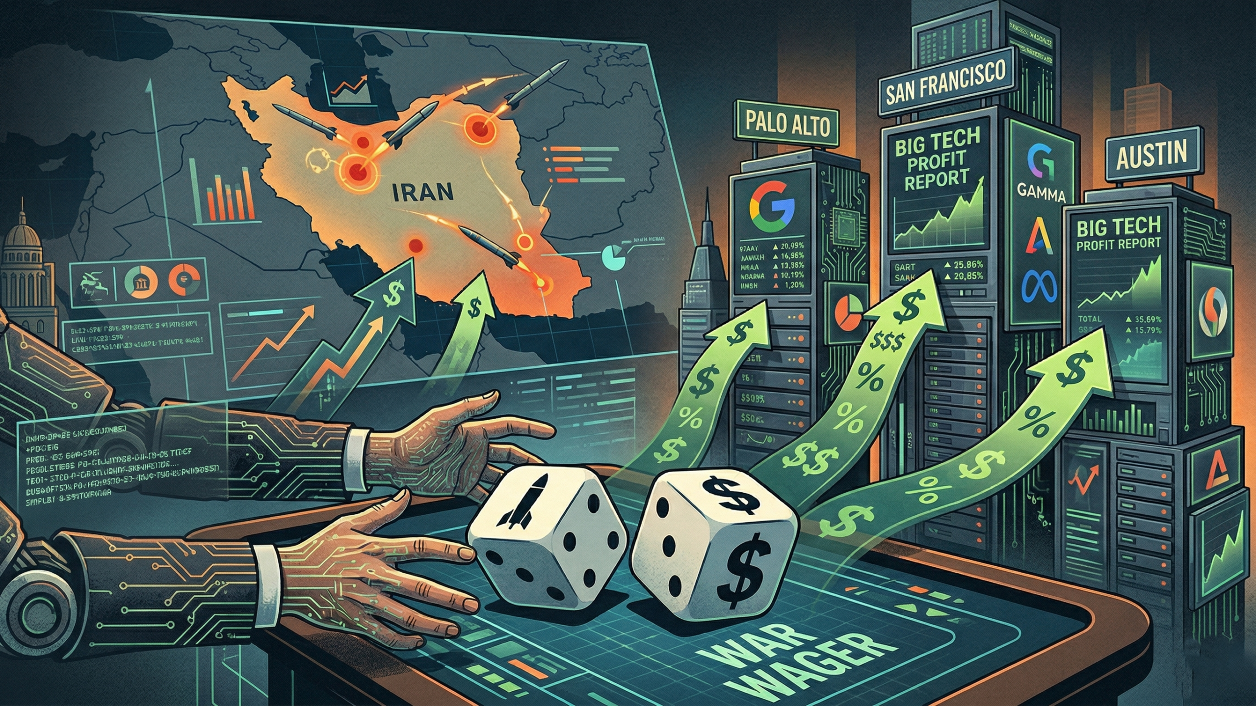 🇺🇸🇮🇷🌐”Miközben Iránban bombázások zajlanak, Palo Altóban, San Franciscóban és Austinban a profitot számolják.”‼️