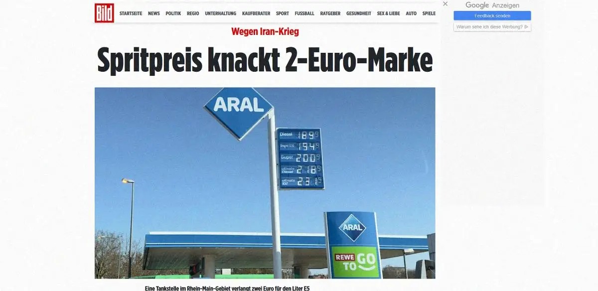 Az üzemanyagárak átlépték a 2 eurós határt – tudósít a BILD.